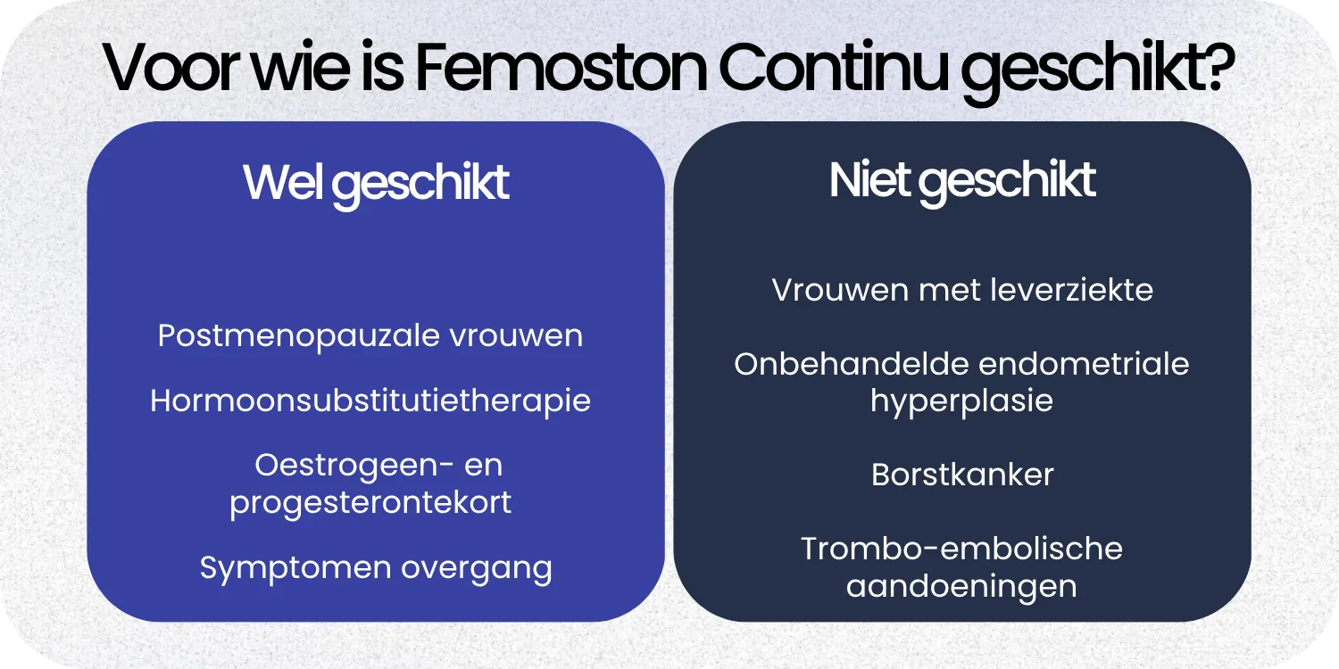Is Femoston Continu geschikt voor elke vrouw in de overgang?
