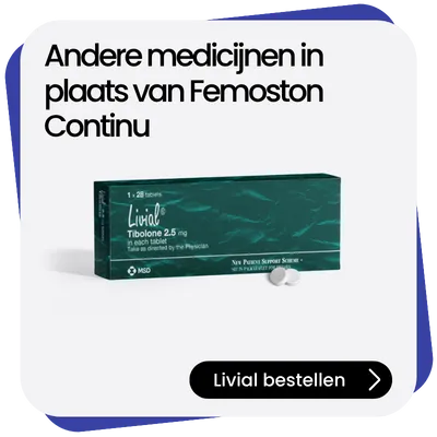 Na een online consult bepaalt een arts of Femoston Continu geschikt is voor u. Als dat het geval is, wordt een digitaal recept opgemaakt en wordt uw medicatie zonder vertraging naar huis gestuurd via een erkende apotheek.